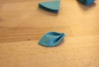 - Cut out and shape the petals; for a flower like mine, I needed 8 large and 8 small petals; for larger dahlias or multi-layered dahlias you will need more. Make many more than you need; you may find that certain petals fit better together than others anyway.