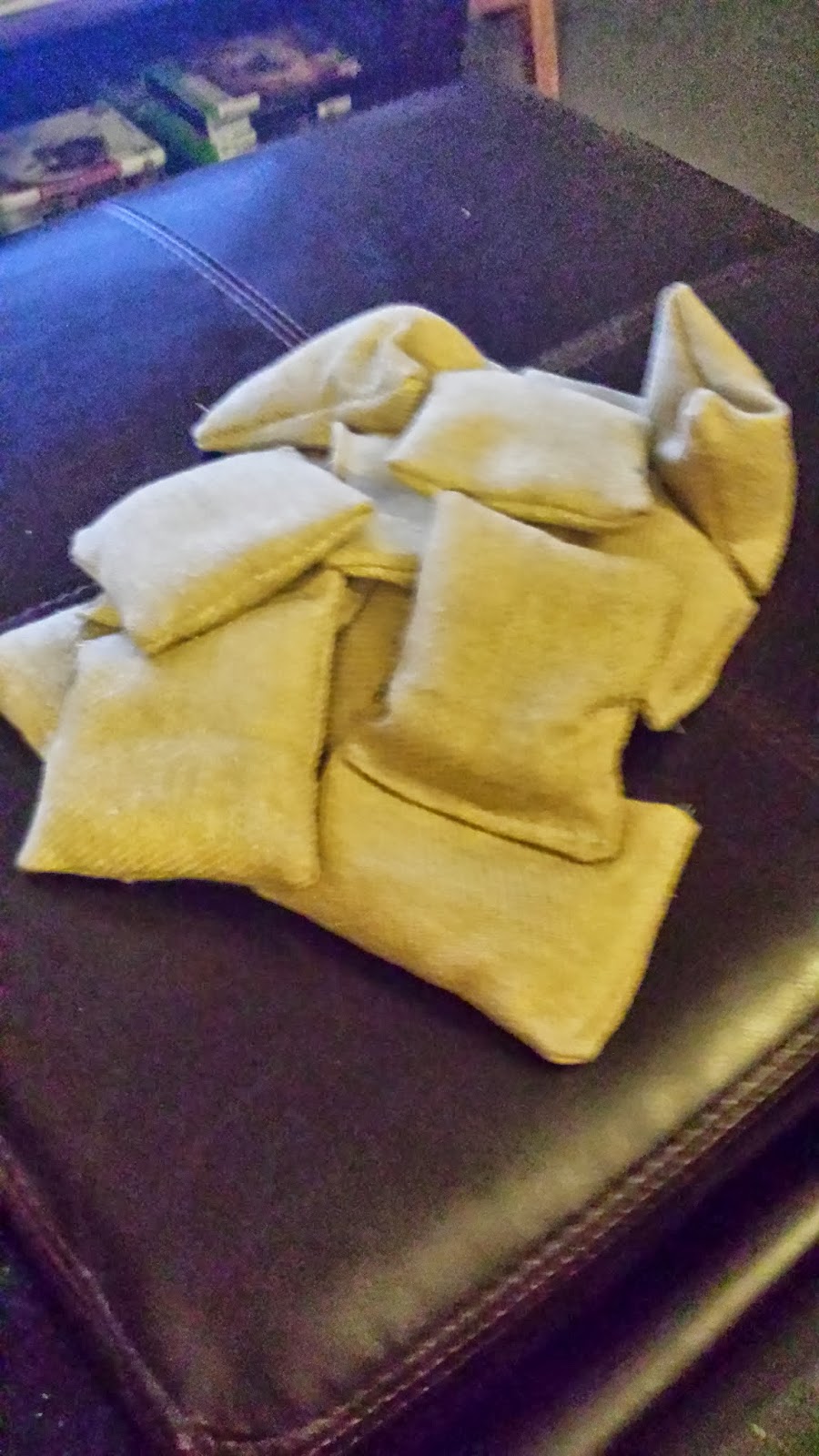 A perfect and recent example? Last night, we found a great cooperative game (beanbag tag) that required several beanbags, one per player. We do not have beanbags; correction – we *didn’t* have beanbags. When we decided to do that game for this week’s meeting, I got all enthusiastic, pulled out my sewing machine, grabbed some strong fabric material from my crafting Tickle Trunk (AKA where craft supplies go to die), and Kat and I whipped up a dozen and a half beanbags in about an hour. We only stopped because I ran out of dried navy beans to fill more beanbags with; I’ll pick up some more tomorrow and make half a dozen more just for kicks.
