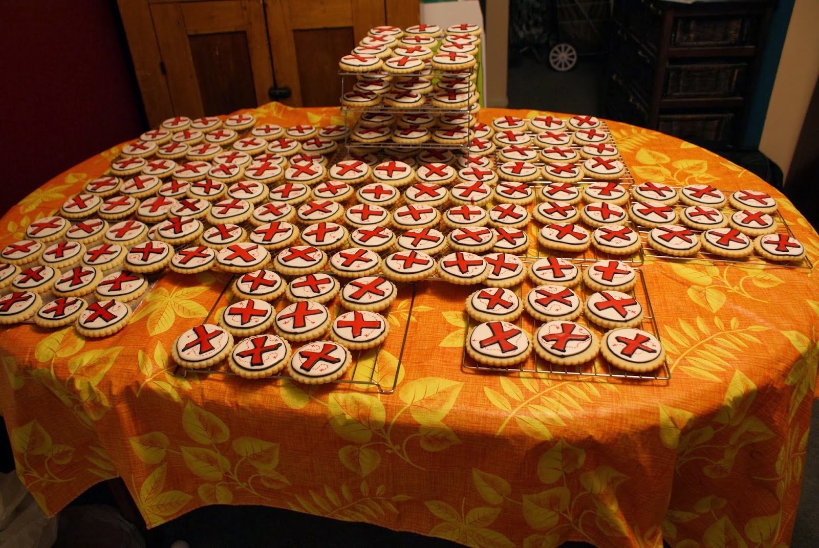 | Each cookie had a stylized “X” carefully piped on the dry surface |