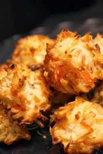 These are not them. This post is about coconut macaroons, which are rich, weighty, gluten-free morsels of coconut, egg whites and condensed milk. They are considered “cookies”, but my opinion is that they’re so sweet that they could also count as candy!