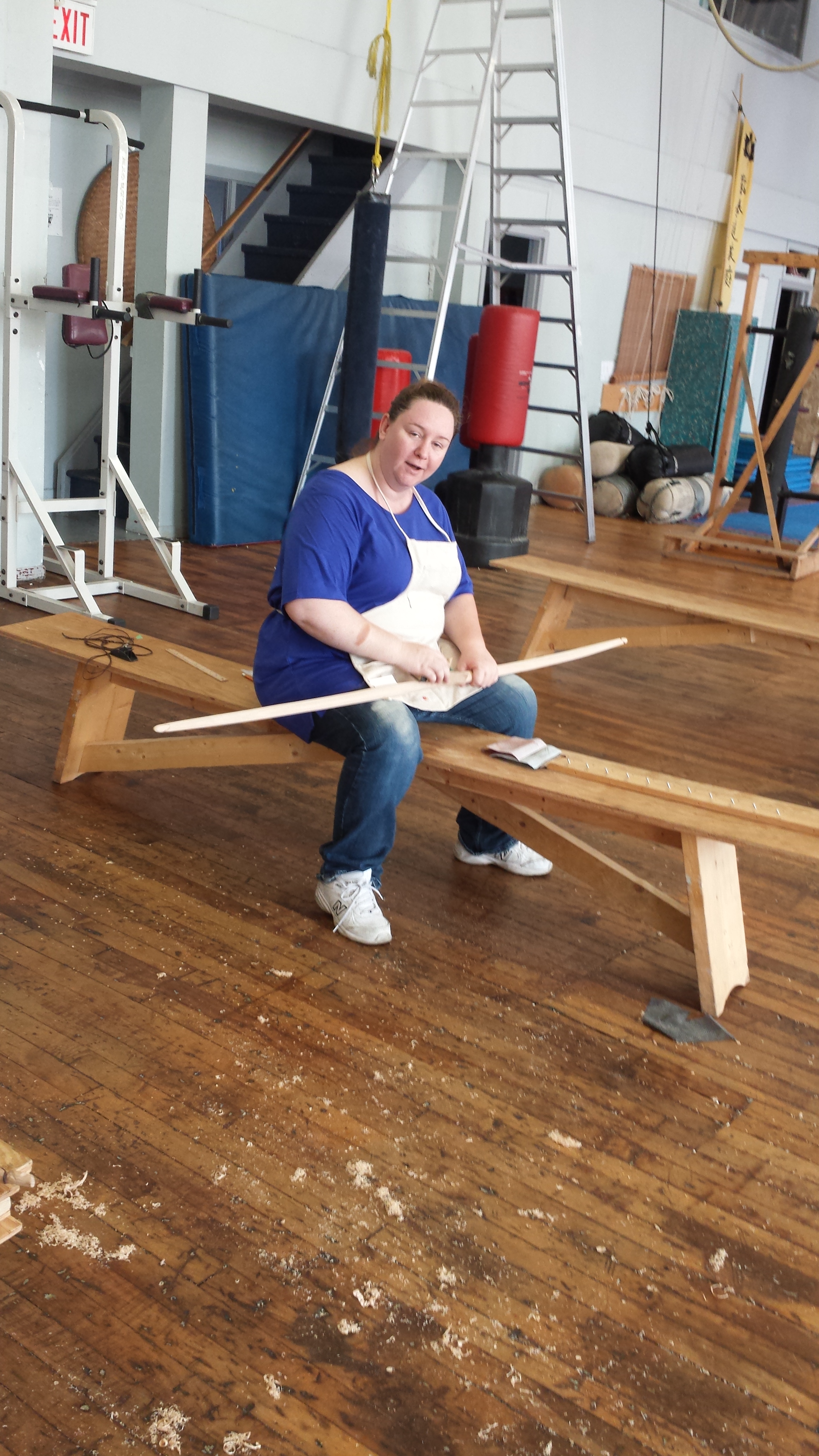 This is me working on my hand-carved longbow from this past summer. Our workshop was a studio run by the Fighting Arts Collective, which rented space to several different clubs, such as AEMMA (Academy of European Medieval Martial Arts), Medieval Longbow Training, a couple of different Martial Arts Academies, and the Flying Studio (an acrobatic club where you can learn aerial silks, hoop, ropework, or static trapeze).