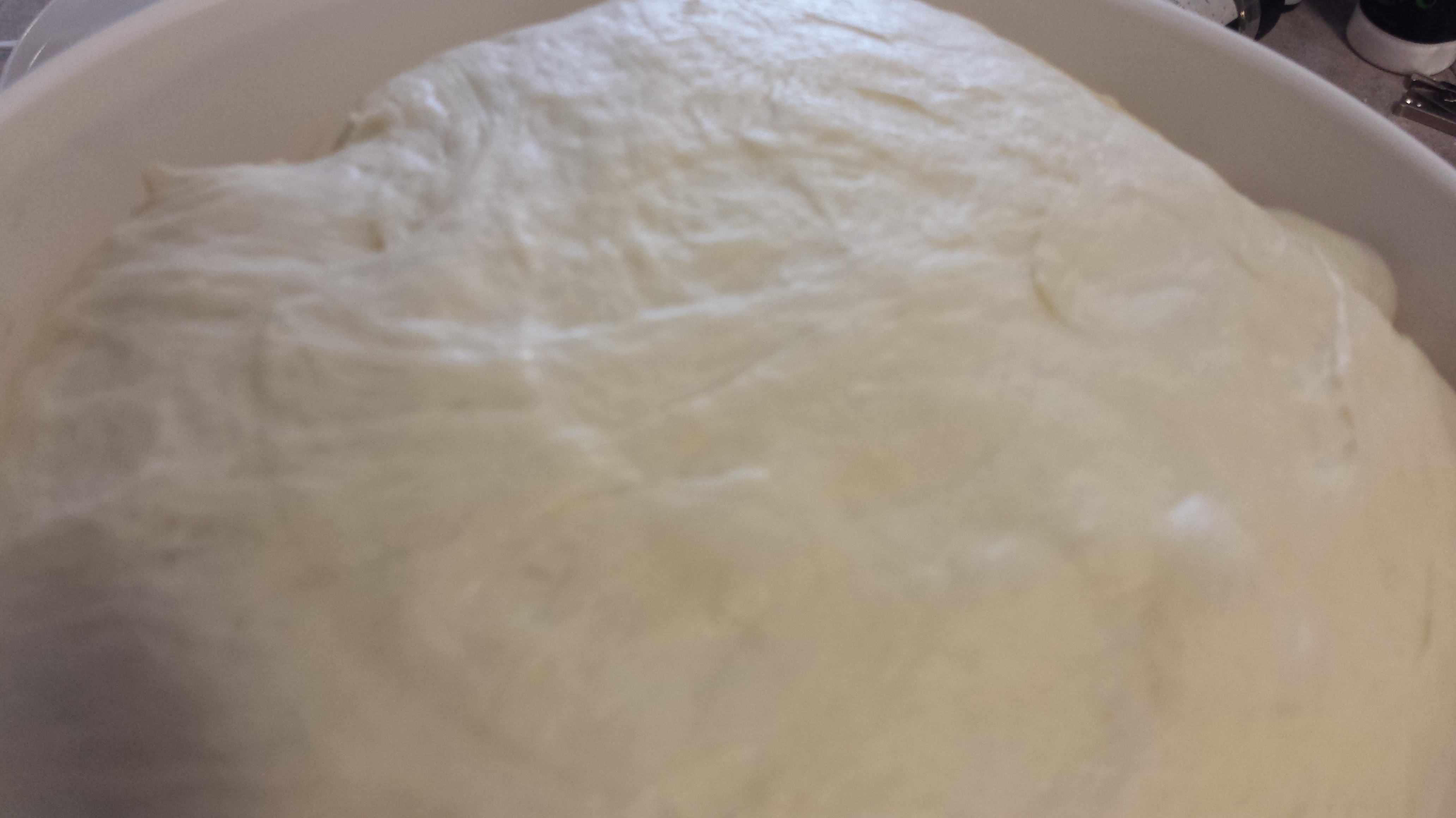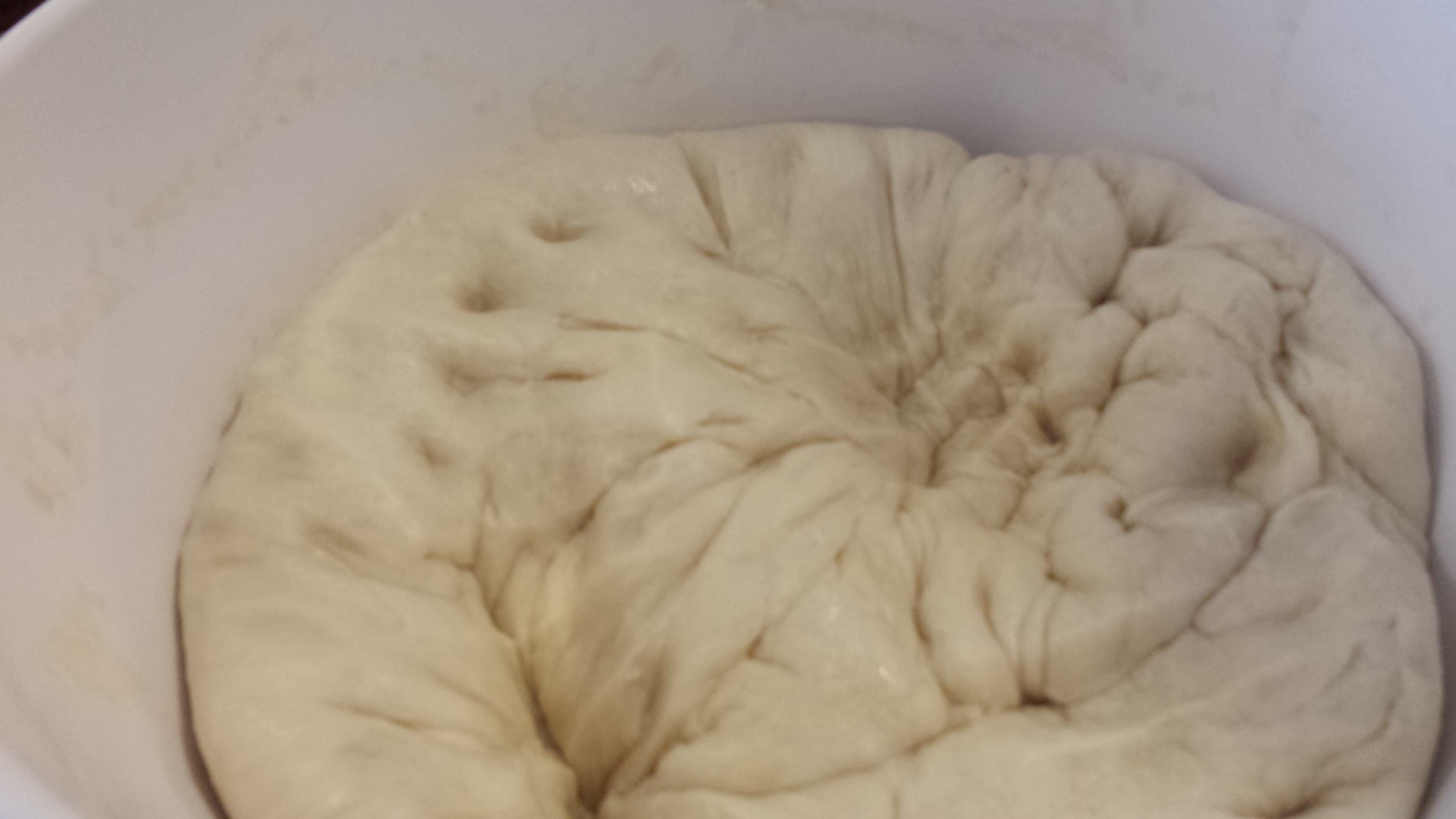 dough, and place the dough back in the bowl. Cover it with plastic wrap and a tea towel, and let rise in a warm, draft free place for 1-2 hours or until it’s doubled in size. When you stick your finger in the dough, the imprint should remain. This is the first rise.