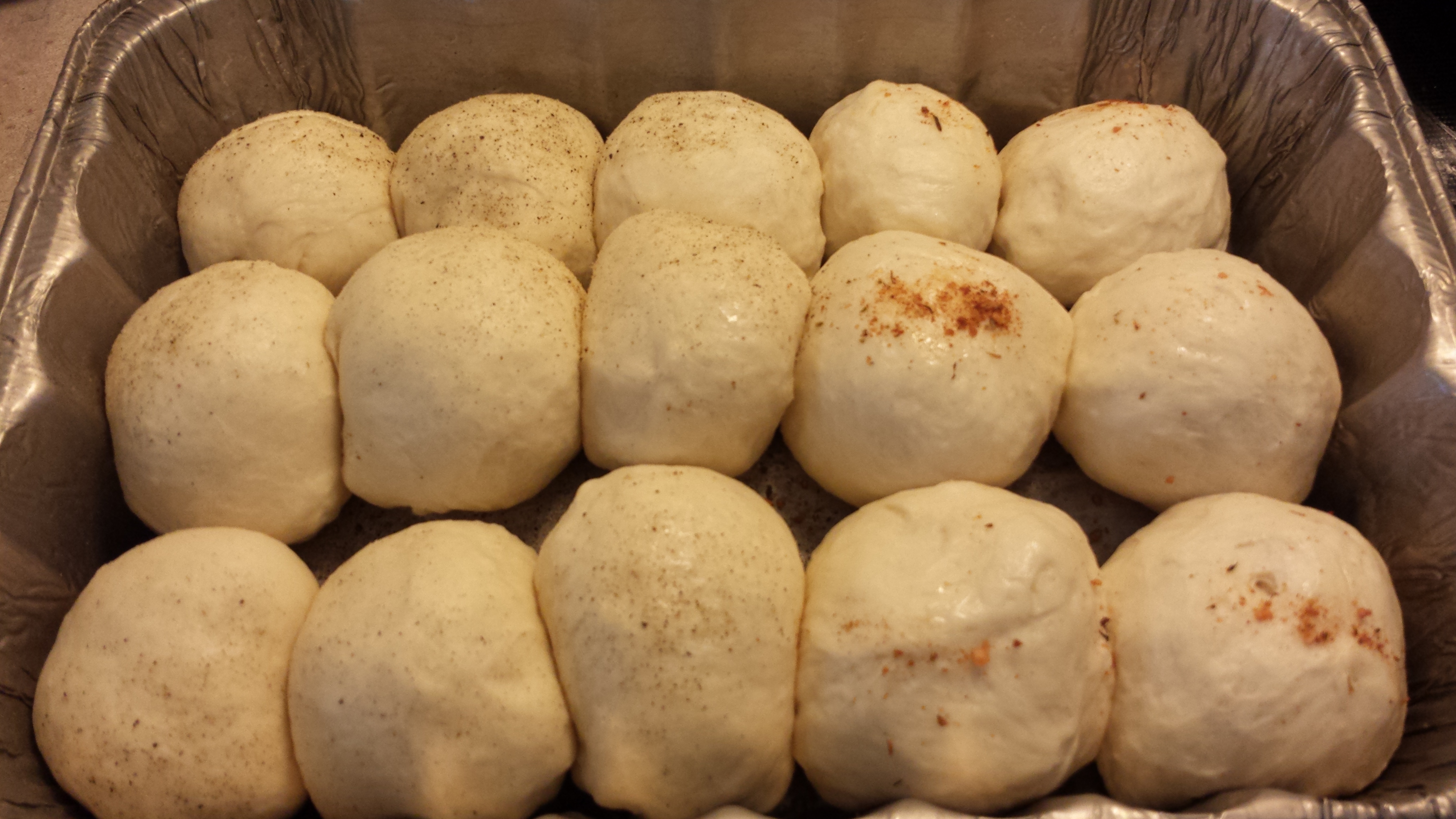 The friends for whom I made this bread on Wednesday seem pretty excited about it; there’s little better than coming home to the smell of freshly baked bread…at least in my opinion. It’s apparent (at least to me) from the pics above that I had to improvise a little when it came to making the bread; with no loaf pans, or even a pastry brush, my free-form loaves are a little wonky. I’d definitely recommend that for this recipe, it’s best in either pull-apart bun form or in traditional loaf pans for structure.