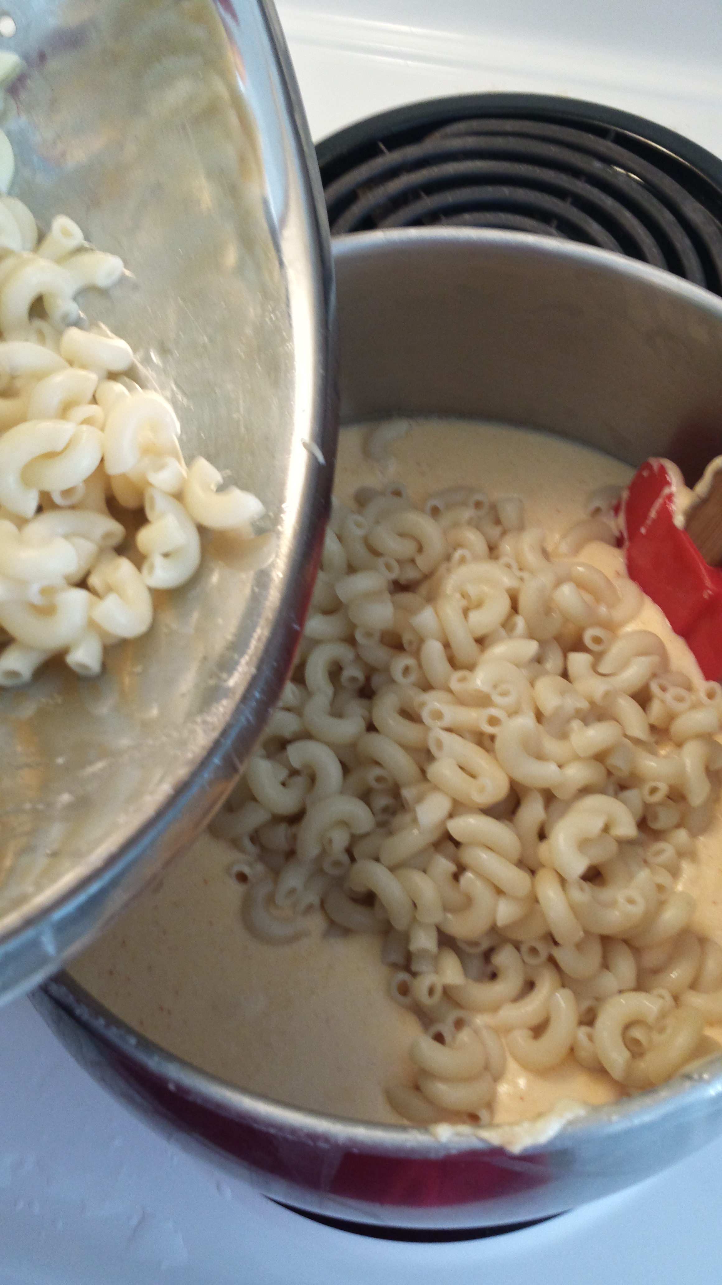 Firstly, I don’t really think the egg is necessary; Eggs are food enhancers; they both add richness and help to combine foods, getting them to “stick together.” The amount of cheese sauce in this recipe, along with the natural starch in the pasta, tales care of that just fine by itself, in my opinion. The addition of the egg just made it taste a little *too* rich, and in the wrong way, like it was a very cheesy quiche.