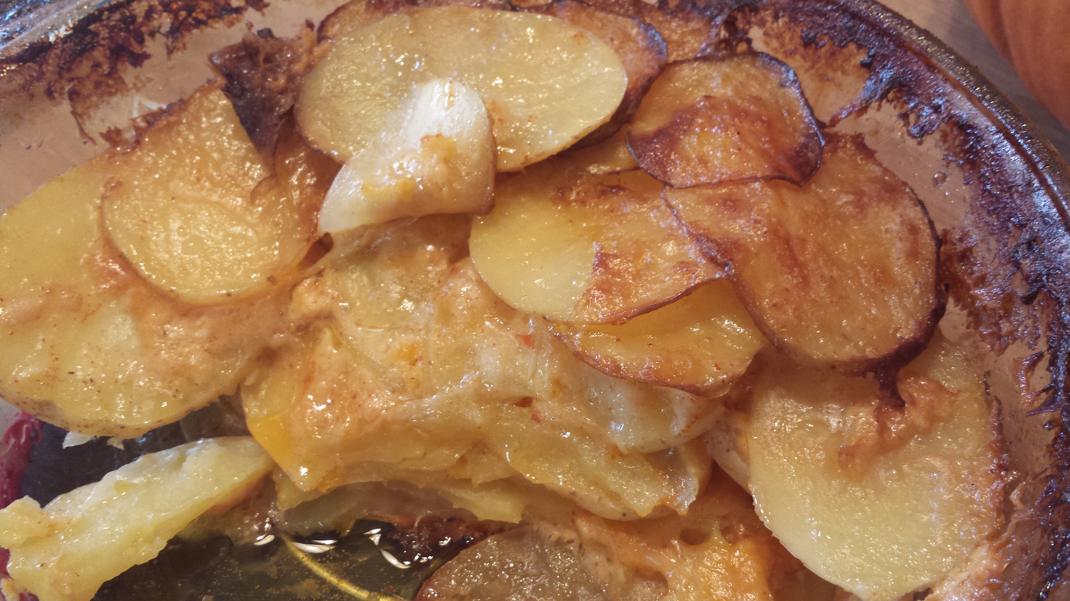 Note: this recipe is *totally* scalable! Just slice as many potatoes as will fit whatever size and shape of baking dish you want to use, use a bit more onion, cheese, and spices per layer, and trust in your ability to pull off a culinary masterpiece in your own kitchen. Go You!!!