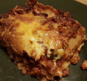 Note: since I’m one of those “bloody vegetarians”, as my dearly departed great uncle Willy used to call me (gotta love the crabby Scotsman stereotype), I made mine with Yves Veggie Ground Round as opposed to ground beef, and used vegan Worcestershire sauce instead of Lea & Perrins (which contains anchovies), but in every other way, this lasagna recipe was followed!