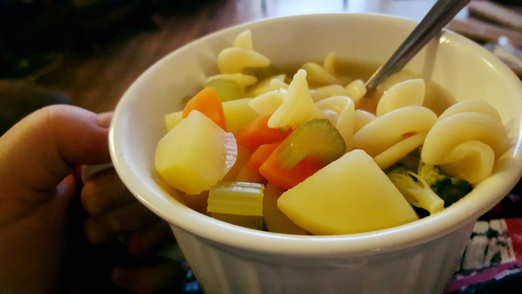 *Note: you can omit dried beans from this recipe entirely or replace with a mixture of lentils, white or brown rice or pearl barley, which do not need pre-soaking; add them directly into the crock pot at the 2-hour remaining mark. You can also add cooked pasta such as egg noodles, rigatoni, macaroni, etc. (or vegan equivalents) to the finished soup instead, like I did in my photo.
