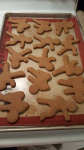 While you are attempting to roll out the sandy monstrosity, do two things: have a small dish of ice water to hand, and keep dipping your fingers into it and sprinkling it onto your dough (sparingly!) as you work. Secondly, save your sanity and roll your gingerbread dough between a large folded piece of parchment or waxed paper; keep forcing the dough together while lightly sprinkling it with the water, and it will work out, I promise. My DF friends have been RAVING about this recipe since I started using this method, and who am I to question my adoring public? (*slow blink*).