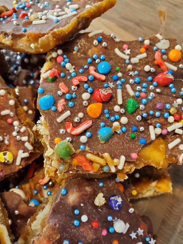 I call this Kat’s Christmas Crack in honour of my good friend Katrina, as while this recipe is an old one, her special addition of fancy molasses really gives the toffee a fantastic flavour and I’ll be doing it this way from now on π