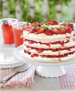 Fresh Strawberry Meringue Cake: this delicious-looking cake from Southern Living website is a perfect use of those locally-grown, just picked berries. This cake just screams, “Summer Garden Party!” to me. It may be a bit fiddly to make, but imagine the oohs and aahs you will receive upon its unveiling.